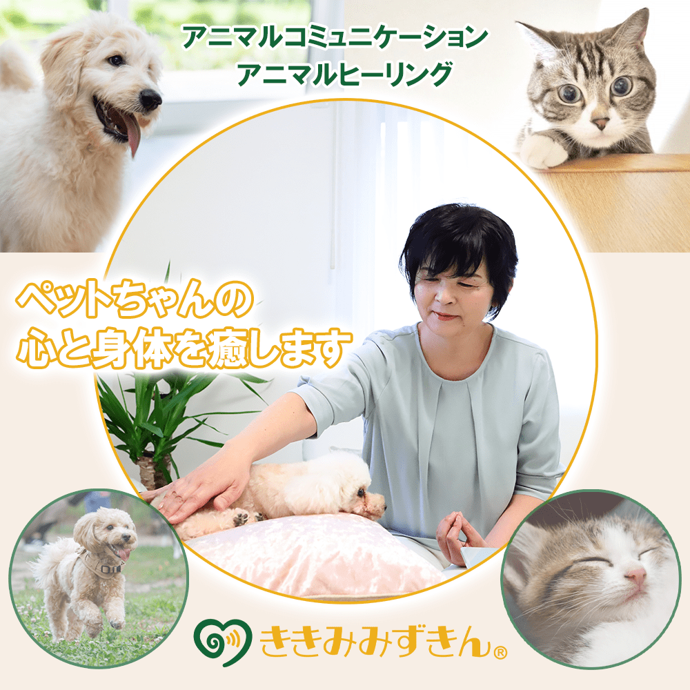 ききみみずきん®代表の小森が20年以上続けている、アニマルヒーリングでこうした症状のペットを元気にさせるお手伝いもしています。